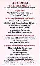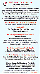 Divine Mercy Prayer Card - This two high quality prayercard (350gsm) has a full-colour Divine Mercy image on the front and the Chaplet of Divine Mercy on the back. Size: 70 x 110mm (2.75” x 4.25”).